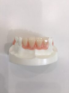 本体はレジンという材料を使用したレジン床です。歯は硬質レジンとういものを用いた人工歯を用いています。欠損部のほとんどはこのレジンの材質の部分が使用されます。