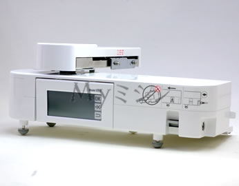 刺繍機をミシン本体に取り付けて、右側面の端子へ刺繍機のコードを差し込むだけで、すぐに使用できます。
