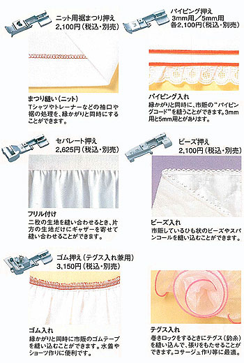 ※オプション品注文の際は、対応機種確認のため、注文時に通信欄へご使用のミシンを必ずご記入ください。