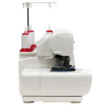 これまで上下ルーパー1本づつ通していた、衣縫人、糸取物語のエアスルーレバーとは異なり、ジェットエアボタンで2本同時にルーパー糸を通します。