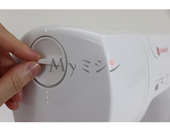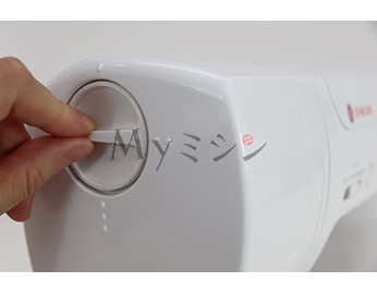 下糸のセットはボビンを入れて溝に合わせて糸を切るだけでOK!という大変便利な機能です。